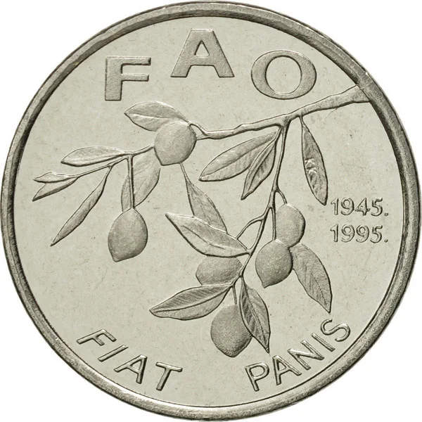 An olive branch with fruits, "FAO" above and "FIAT PANIS" below, with the dates 1945 and 1995 to the right.