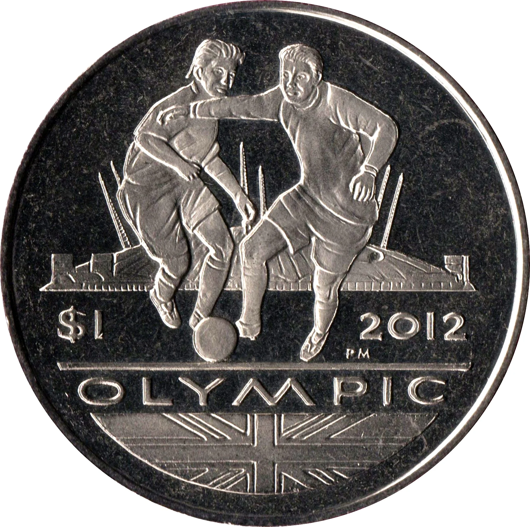 Soccer players chasing the ball before the Dome, Union Jack below.