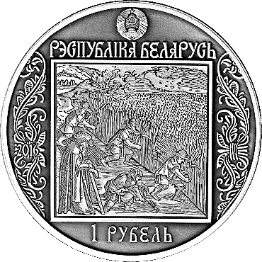 Description: Center: Padova from old engravings, flanked by fragments of medieval buildings. Below: an armillary sphere, oak garlands, and Skorina's print marks, over the inscription "ПАДУЯ". Above, in a circular arch: "ШЛЯХ СКАРЫНЫ".