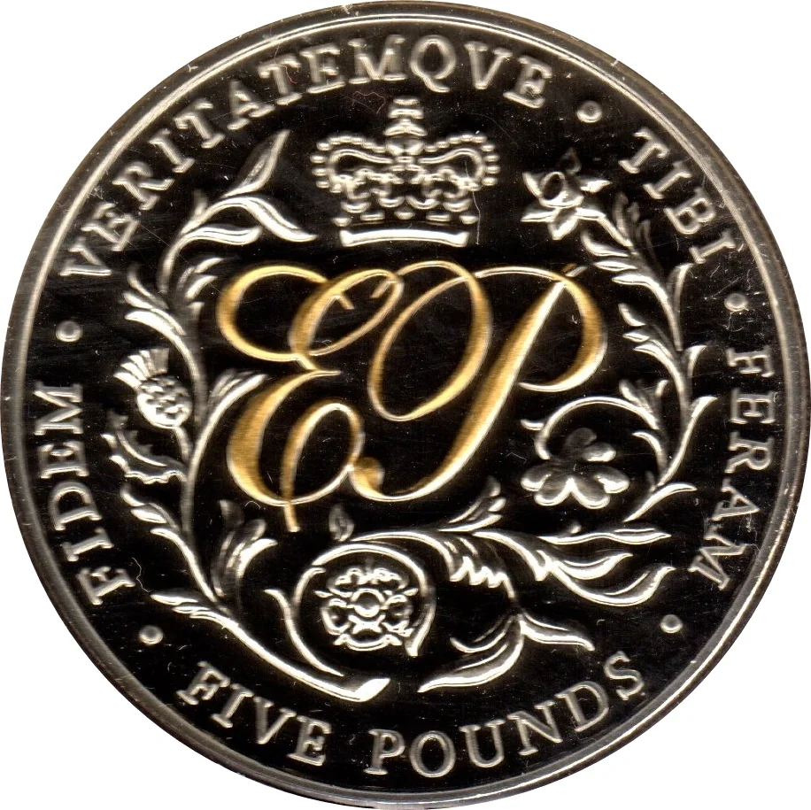 Gilded EP in italics, crowned, surrounded by national flowers.