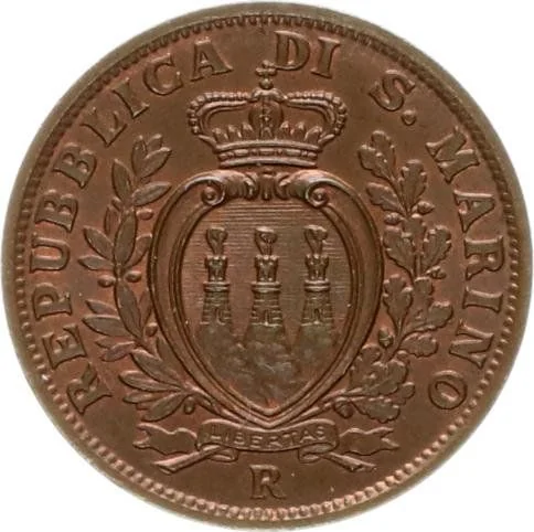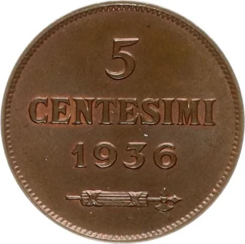 In 1935, San Marino’s currency situation was intrinsically tied to that of Italy, operating under a de facto monetary union without formal treaty. The republic had ceded its right of coinage to Italy in 1862, and the Italian lira was the sole legal tender and circulating medium of exchange. Sammarinese authorities issued their own low-denomination coinage, but these were minted in Rome, had limited circulation, and were designed to be strictly complementary to the Italian system, circulating at par with the lira.