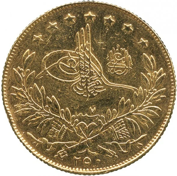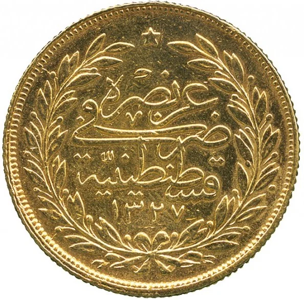 Toughra above year, wreath, and value, with "el-Ghazi" at right.