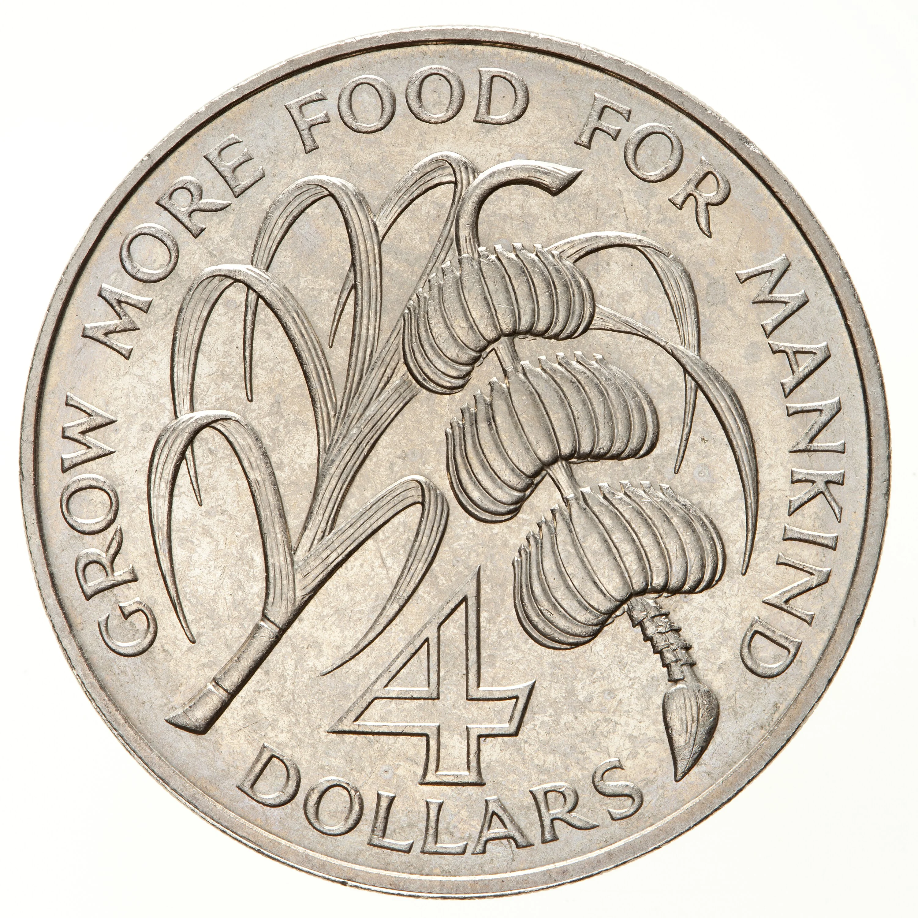 Arms of Antigua and Barbuda, date below, inscriptions around rim.