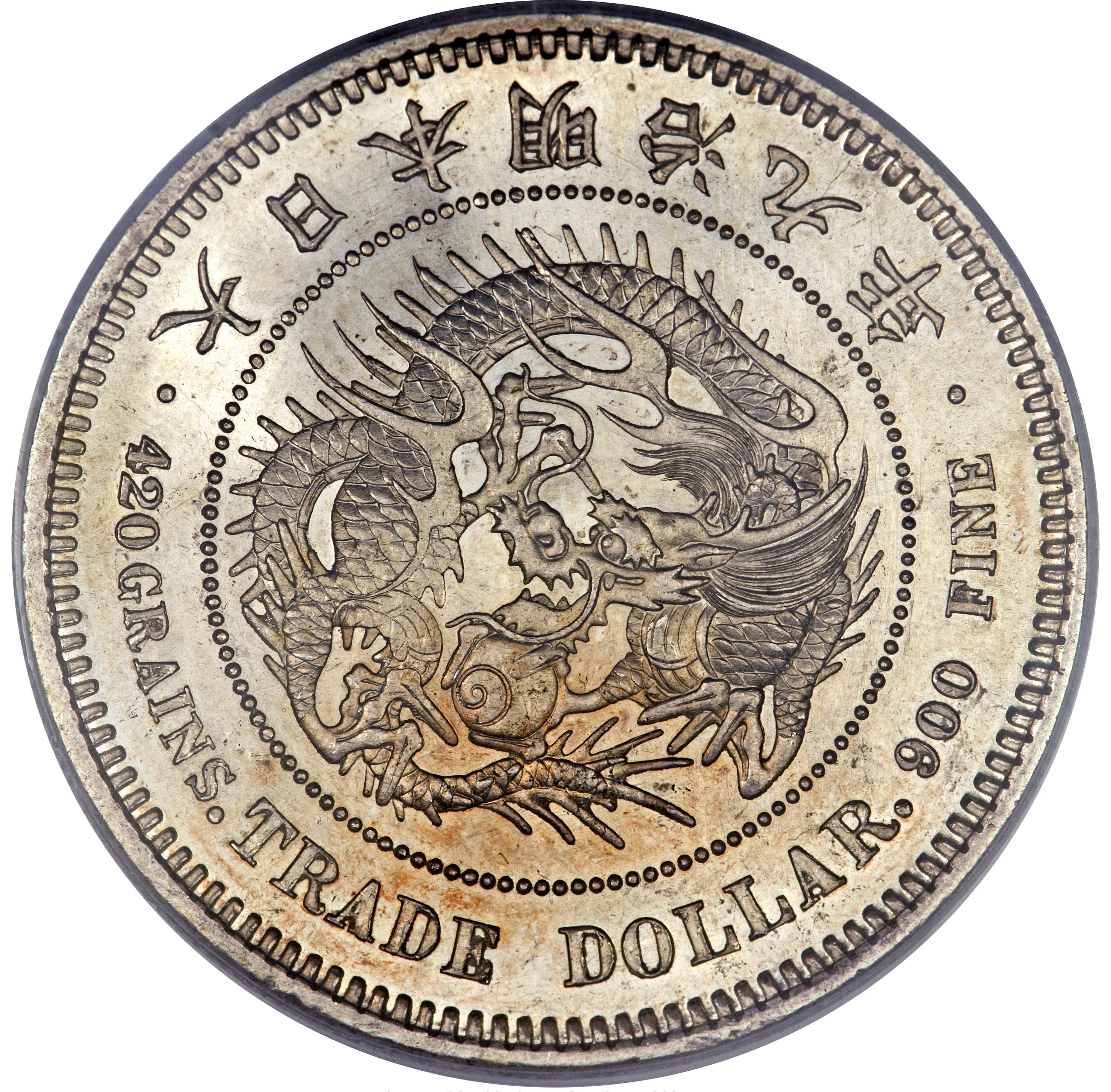· 420 GRAINS. TRADE DOLLAR. 900 FINE ·
