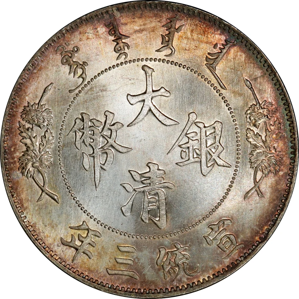 Four Chinese characters read vertically, right to left, with Manchu script above, more characters below, and flanking flowers.