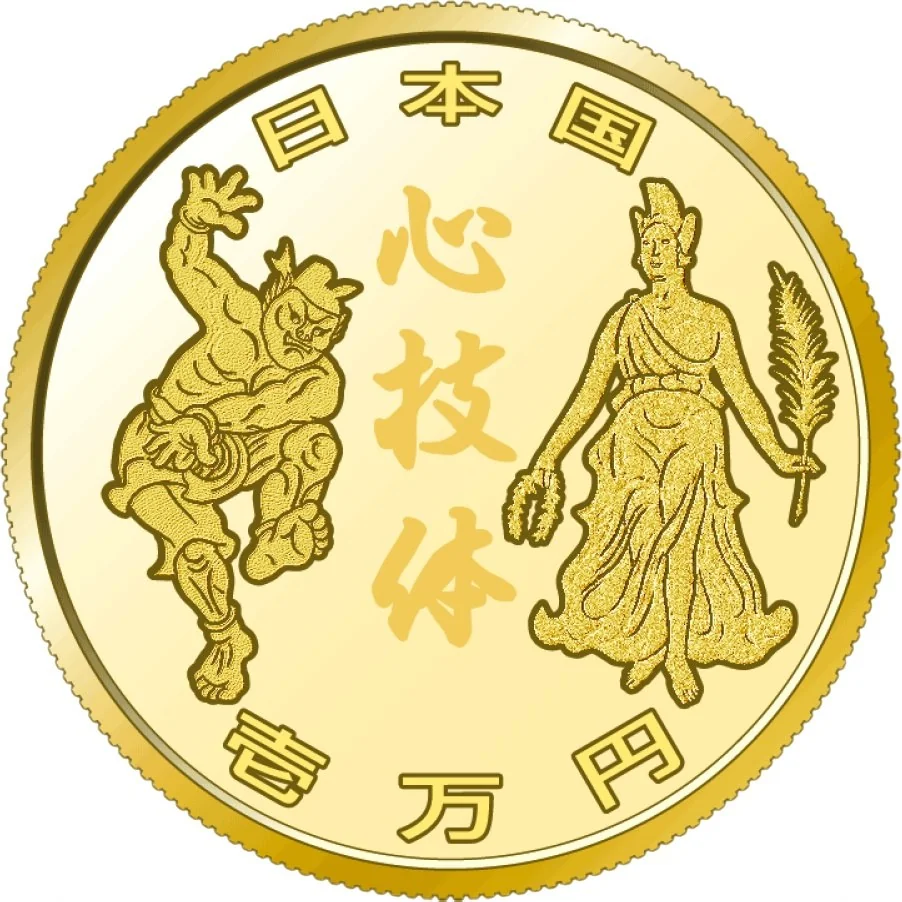 Victory as Nomi no Sukune and Glory as a Greek goddess flank kanji expressing sport's philosophy.