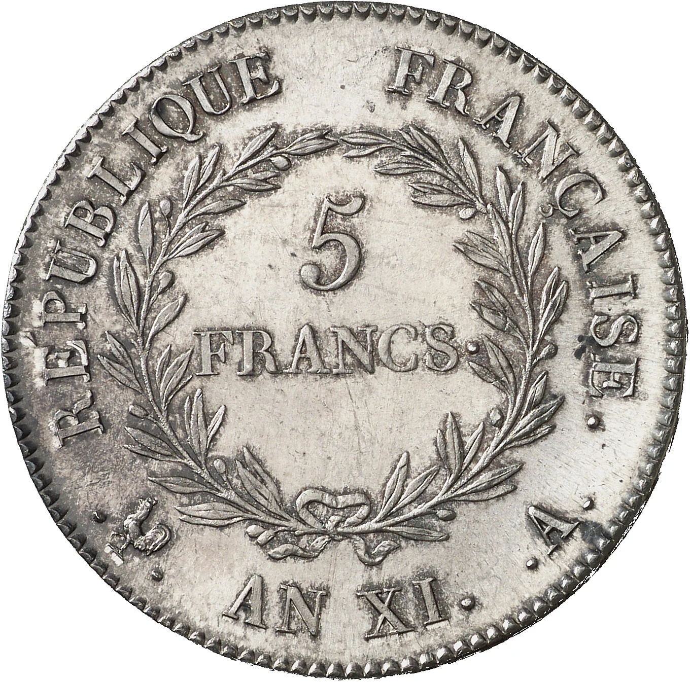 Banque de France) in 1800, which was granted the exclusive right to issue banknotes in Paris. By 1802, the Bank was still consolidating its authority, its notes gaining cautious acceptance primarily within financial and commercial circles in the capital. The more fundamental reform, however, was the preparation for a complete recoinage. The Law of 7 Germinal Year XI (28 March 1803) established the Franc Germinal, defining the new currency in pure silver and gold, with a fixed bimetallic ratio. While formally enacted in early 1803, the intense planning and political will driving this reform defined the monetary landscape of 1802.