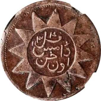 Arabic legend inside twelve-rayed sun.