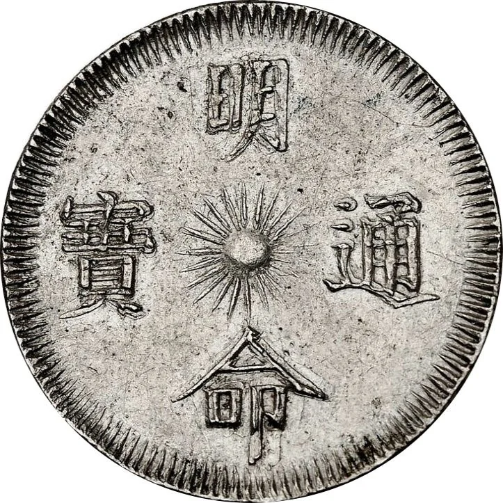 Four Chinese characters read vertically, right to left, centered on the sun.