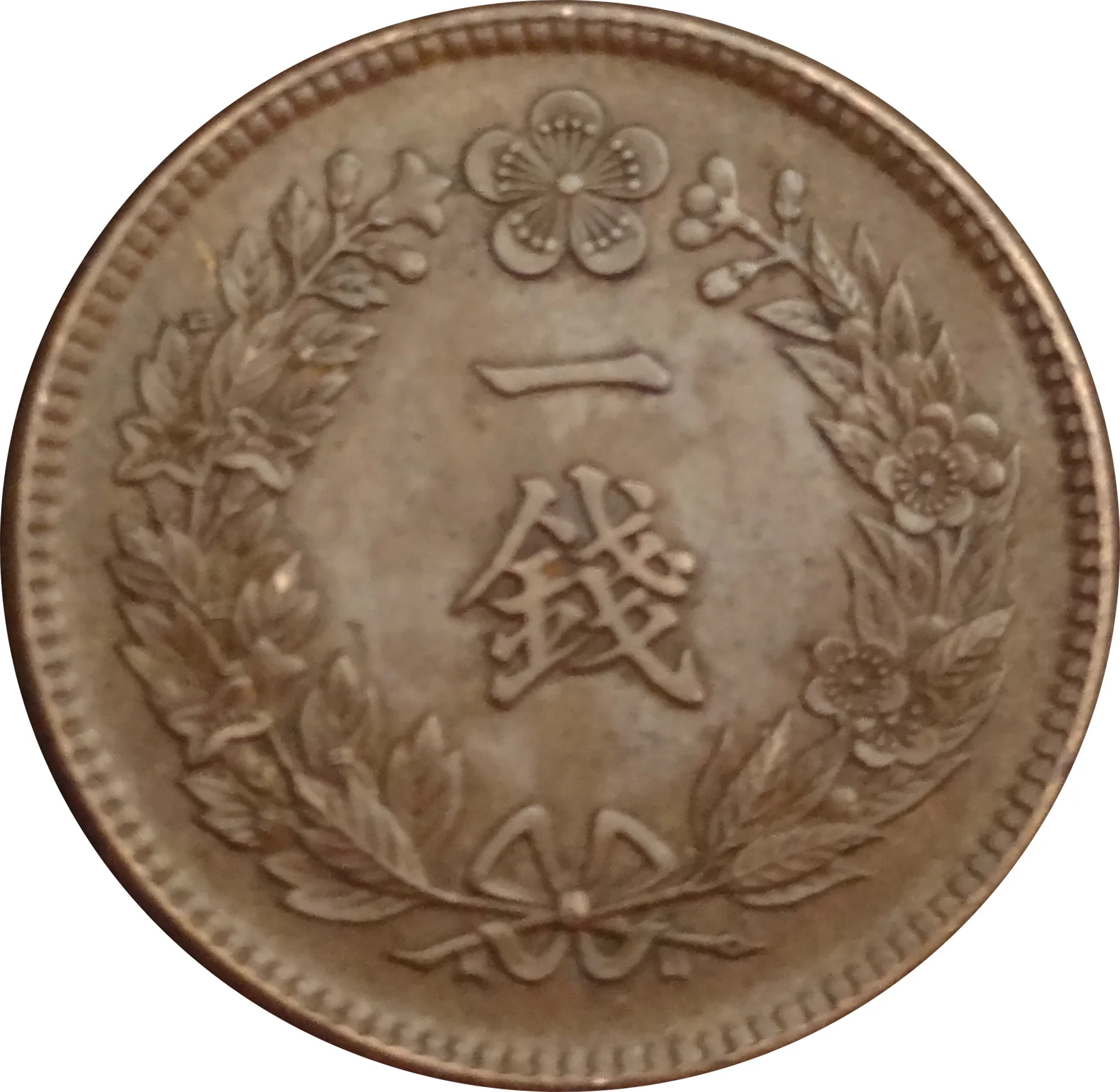 Denomination with wreath and plum flower (Imperial Seal of Korea).