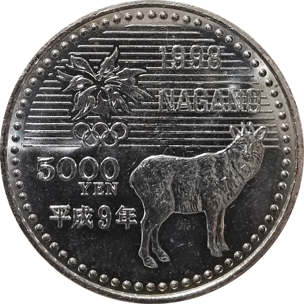 Olympic emblem featuring the Japanese serow, with value and dates.