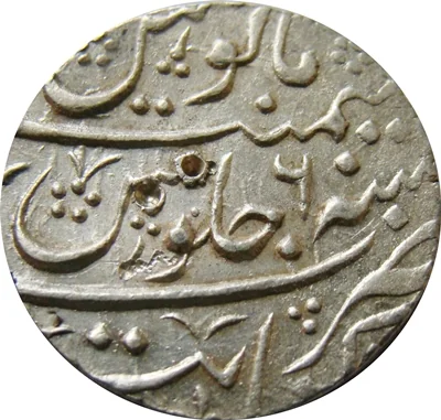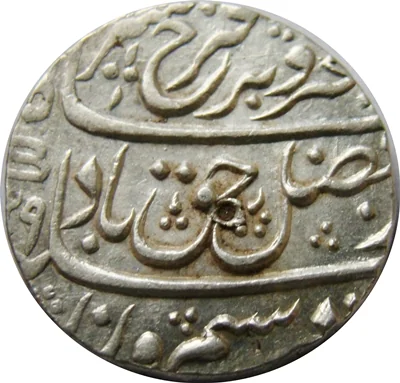 Inscription: Badshah-e-Barr couplet. Sikka struck by divine favor on silver and gold. Badshah Bahar-o-Barr Farrukhsiyar.