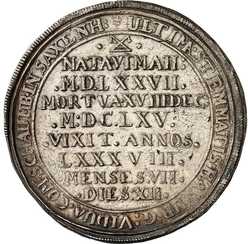 Inscription: ULTIMA · STEMMATIS · HARBURG : VIDUA . COM : SCHAUMB · IN SAXENH