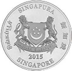 Emblem with date; 'Singapore' encircles it in English, Tamil, Chinese, and Malay.