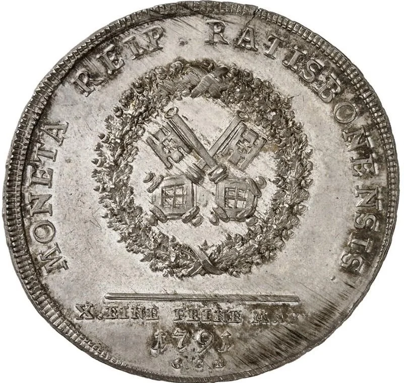 MONETA REIP. RATISBONEENSIS., X. EINE FEINE MARK/1791/G.C.B.