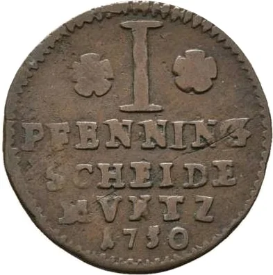 1 PFENNING SCHEIDE MUNTZ 1750