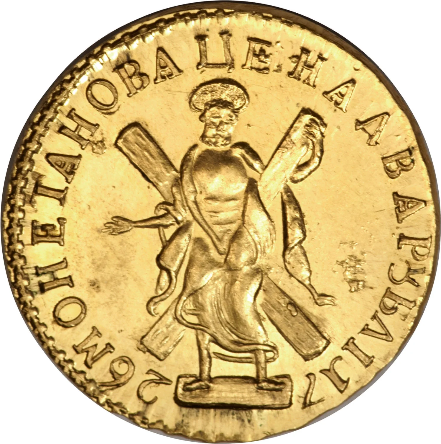 Saint Andrew, right hand raised.