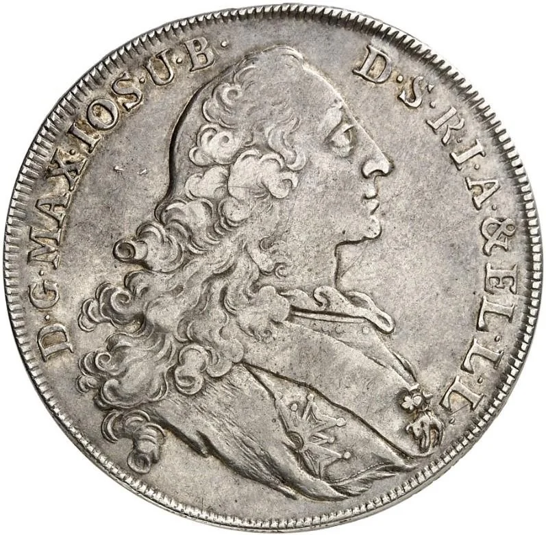 Rampant lion facing right, holding sword and crowned shield with Bavarian-Palatinate arms and central imperial orb, orders suspended below, date in cartouche.