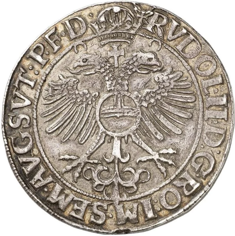 Imperial double-headed eagle bearing Rudolf II's orb and titles.