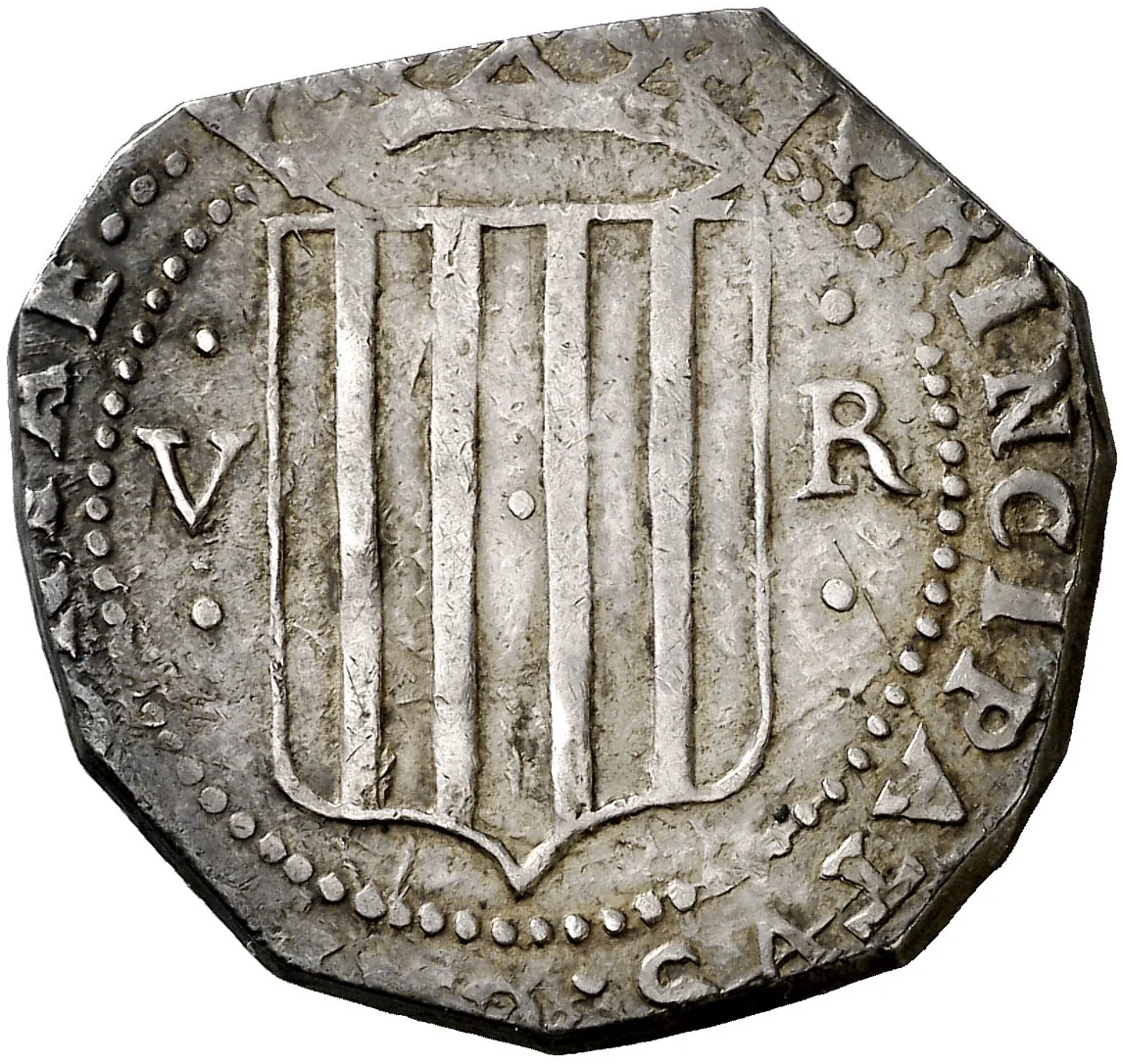 Cross divides legend, annulets at angles one and four, three bezants at two and three. Central lozenge shield. Legend between beaded circles.
