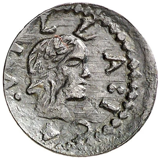 Cross divides legend; annulet in first and fourth quarters, three bezants in second and third. Legend within beaded circle.
