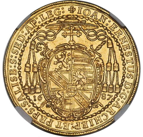 In 1687, the Bishopric of Salzburg operated within the complex monetary landscape of the Holy Roman Empire. As an independent ecclesiastical principality, it possessed the right of coinage (Münzregal), which it exercised through its mint. The primary currency in circulation was the Salzburg Gulden (florin), which was subdivided into 60 Kreuzer. However, the monetary system was far from uniform; alongside local coinage, a plethora of foreign coins from neighboring German states, the Austrian Habsburg lands, and even Italian and Dutch trade coins circulated freely, leading to frequent confusion and valuation disputes in commerce.