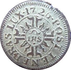 Double cross, IHS centered in circle.