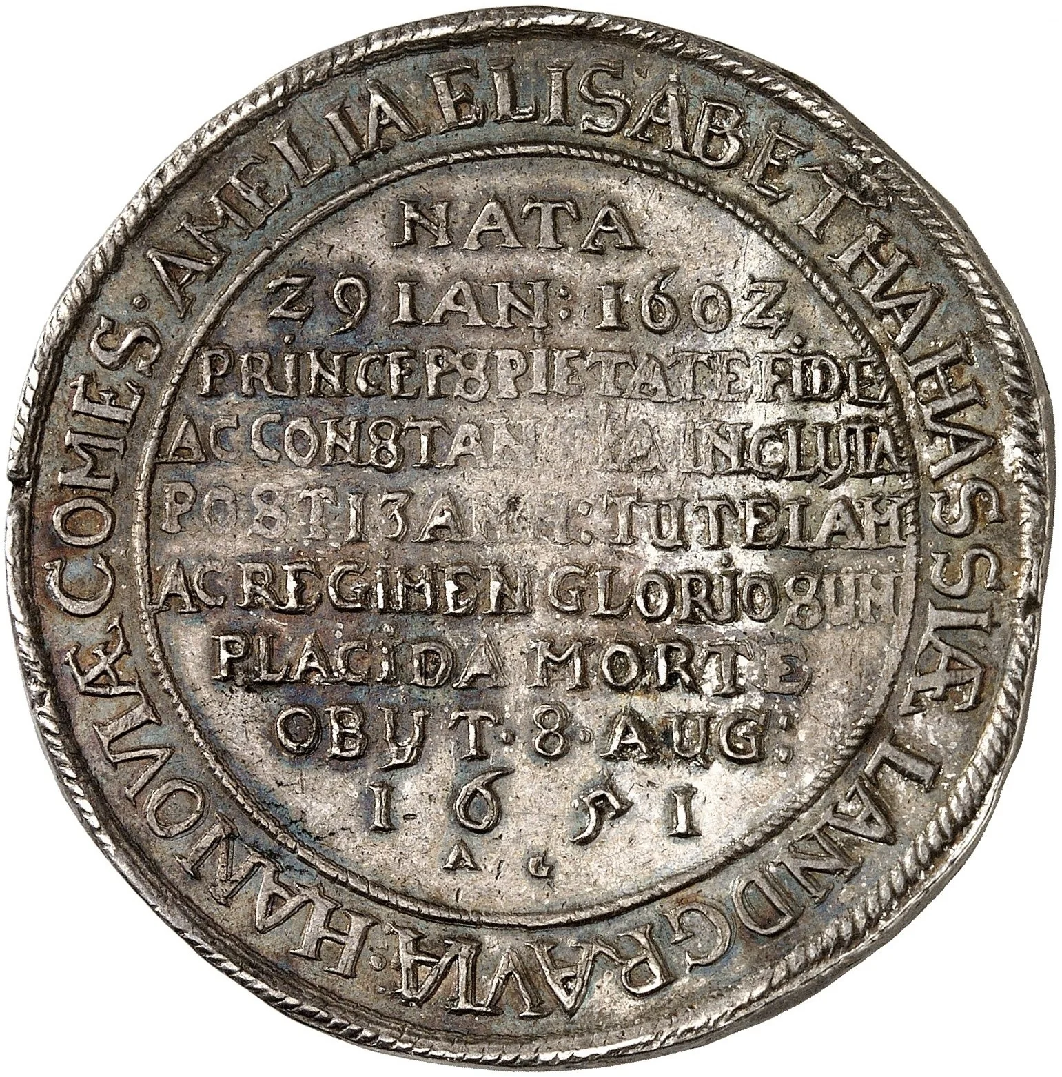 Inscription: AMALIA ELISABETHA • HASSIAE LANDGRAVIA • HANOVIAE COMES:
