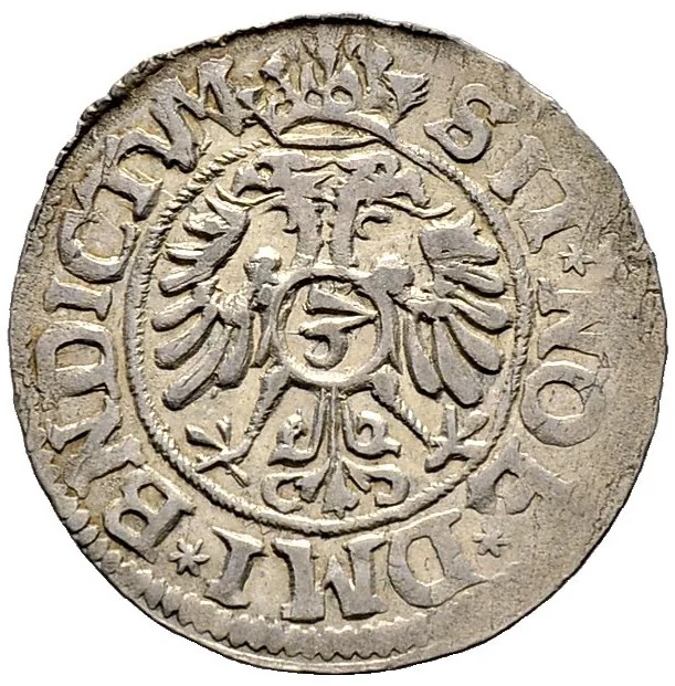 Double-headed eagle with a crown, holding a round frame with the value "3" on its chest.