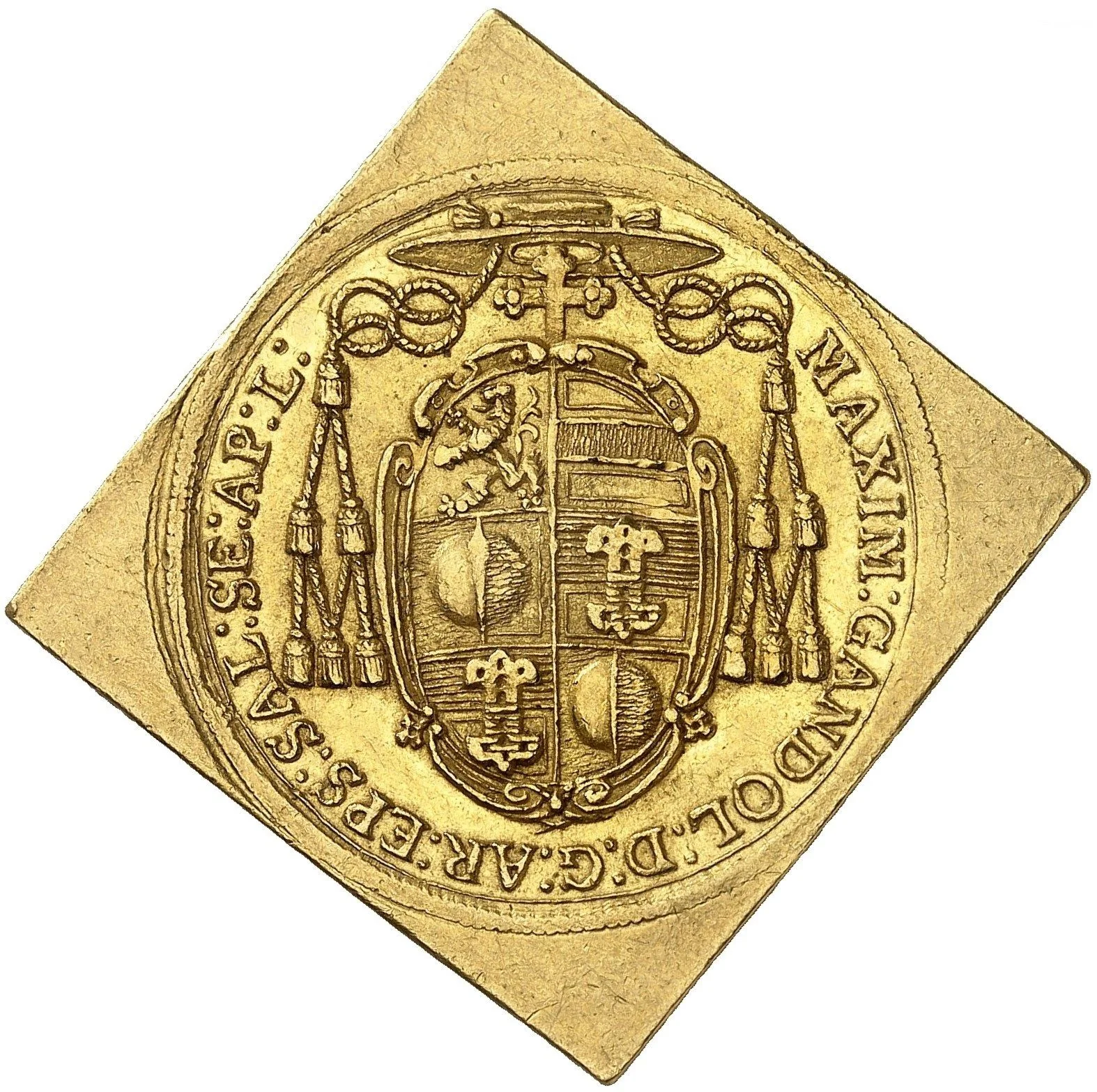 Arms beneath a Legate's hat.