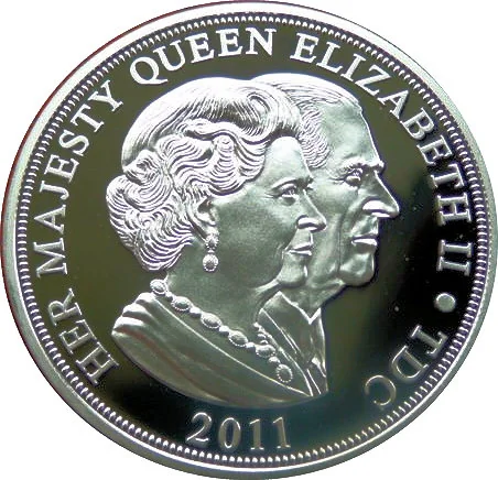 Crowned rope circle with four national emblems encircling gold-plated initials and value.