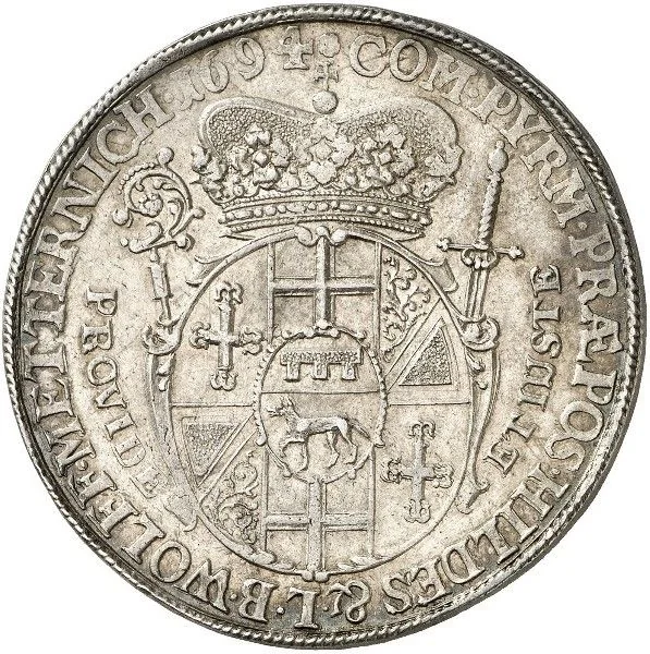 Inscription: COM. PYRM. PRÆPOS. HILDES. &. L. B. WOLFF. METTERNICH. 1694