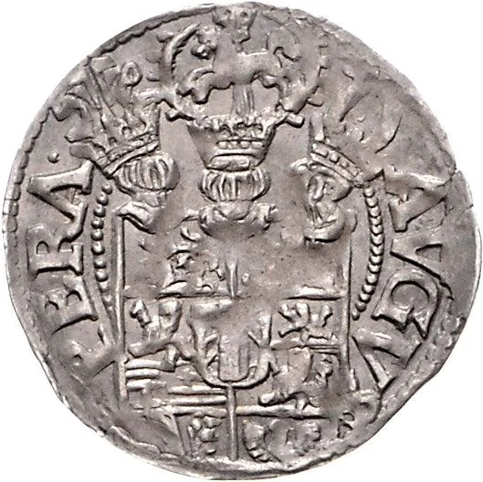 Shield with eight arms, central Ratzeburg emblem, three ornate helmets above.