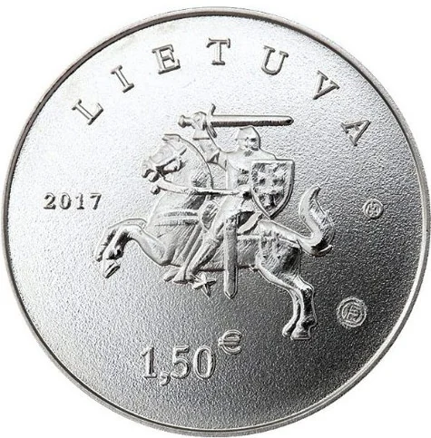 The obverse shows a stylized Vytis, encircled by LIETUVA, 2017, €1.5, and the Lithuanian Mint mark.