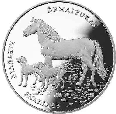 The reverse features the Lithuanian hound and žemaitukas, ancient domestic breeds developed from the hardiest local animals.