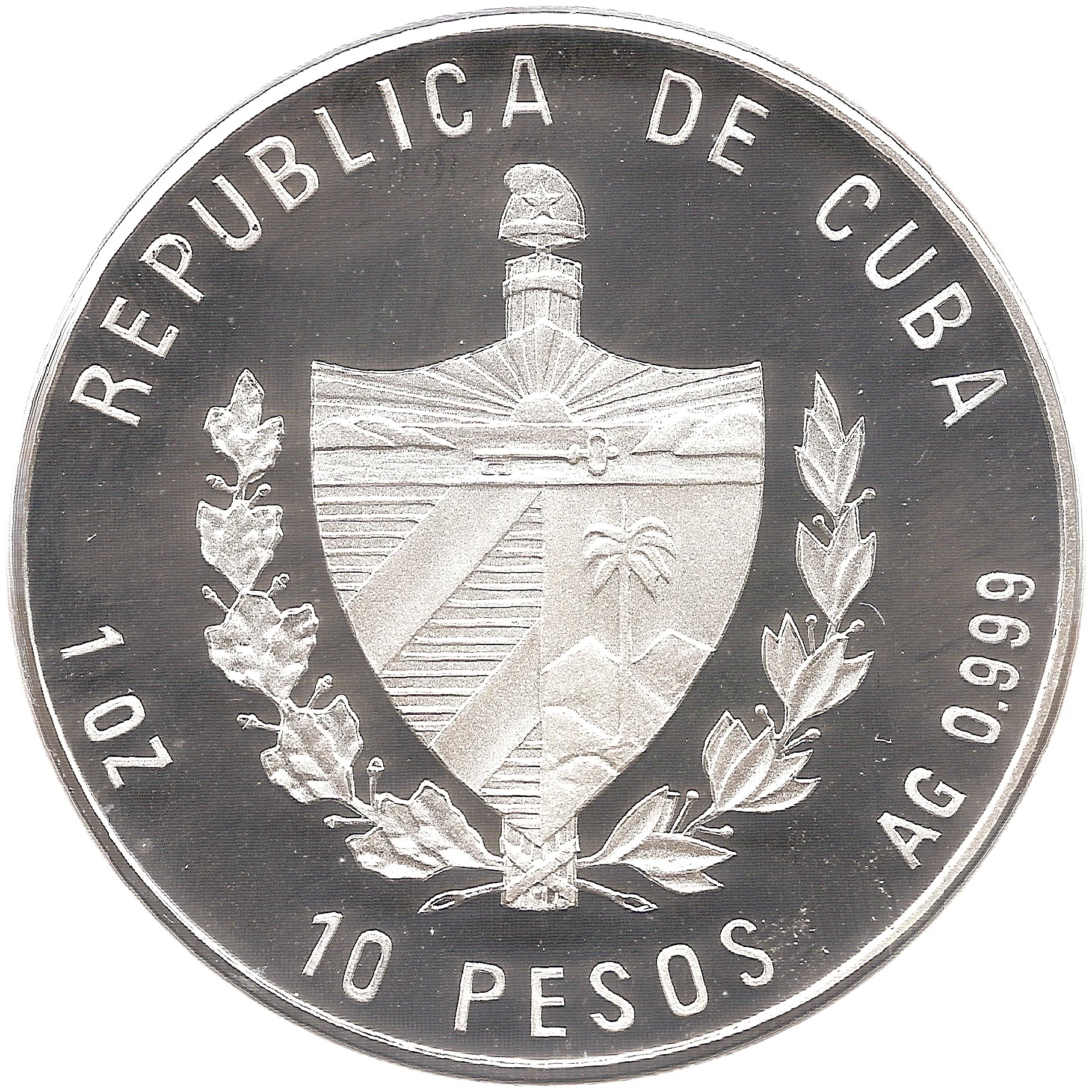 Description: Half-length figure of Pope John Paul II facing left, with Havana Cathedral in the background. Event text surrounds, with issue date and mintmark at lower left.