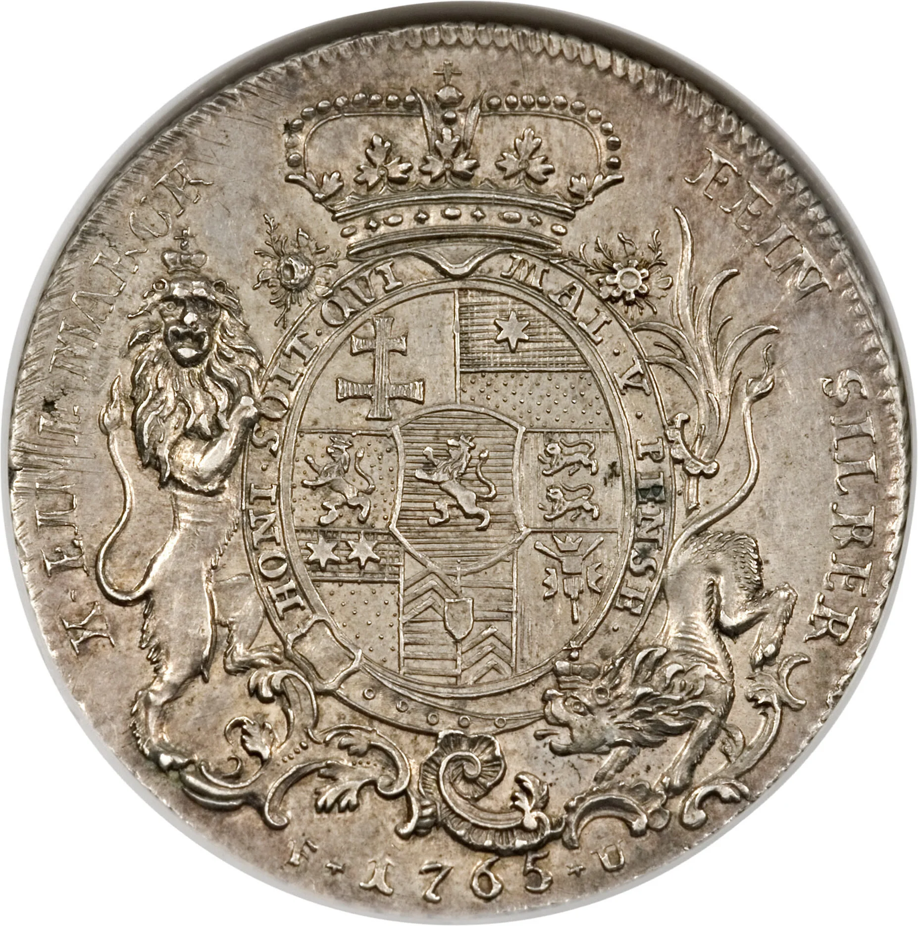 X EINE MARCK FEIN SILBER HONI.SOIT.QVI MAL.Y.PENSE. F 1765 U