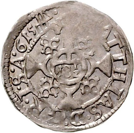 Imperial eagle with orb, value 18-1/2, crowned. Legend bears Matthias's titles and date.