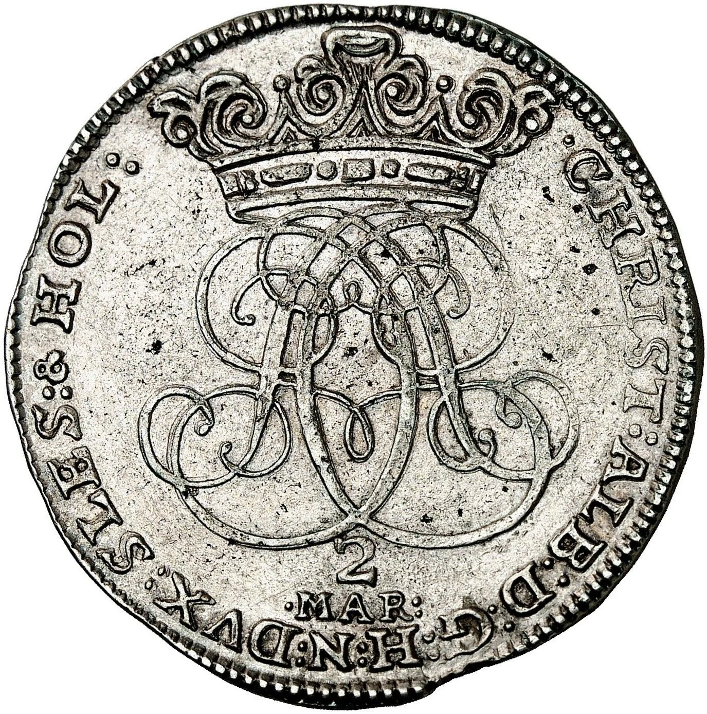 Crowned double 'CA' monogram above 2/MAR, encircled by Christian Albrecht's titles.