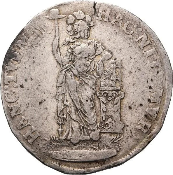 Female figure leaning on a Bible, holding a spear with a liberty cap.