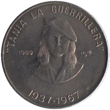 Bust of Tania la Guerrillera. Name above, issue year left, mintmark right, living years below.