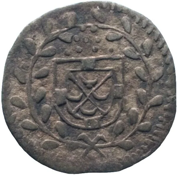 Orsbeck arms on Trier shield, encircled by wreath.