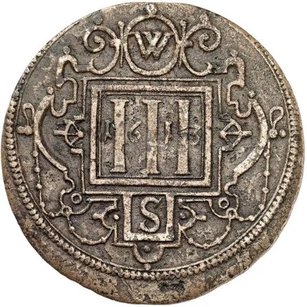 Ornamented square with 'W' in oval above, 'S' in square below, and "1 I 6 I 1 I 3" at center.