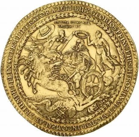DUX GLORIOS : PRINC : PIUS : HEROS INVICT : VICTOR INCOMPARAB : TRIUMPH : FELIX & GERM : LIBERATOR : Ao 1633 :