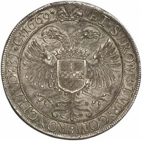 Crowned double eagle bearing a shield.