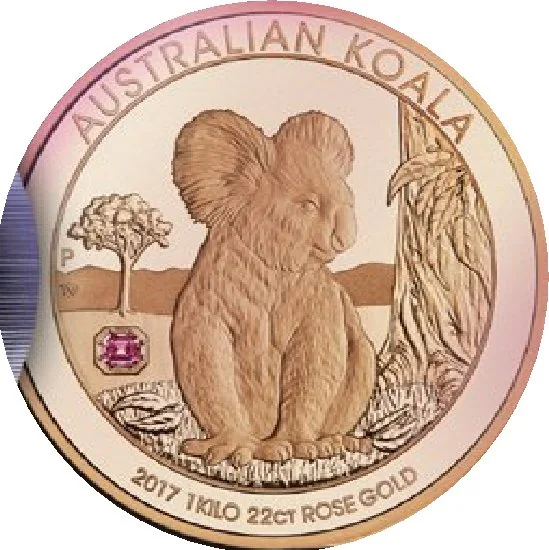 Koala under a eucalyptus tree with a 0.58 carat Fancy Intense Pink diamond.