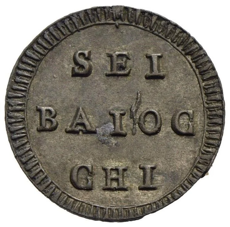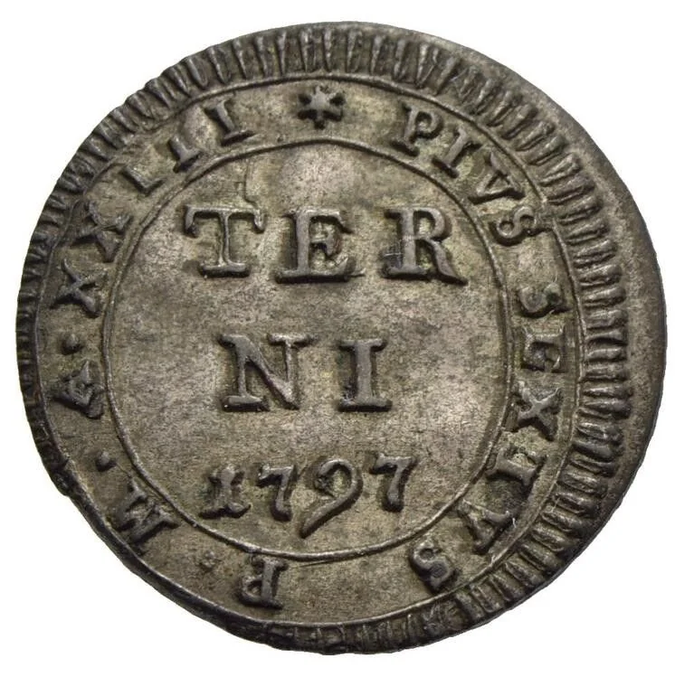 In 1797, Terni, like much of the Papal States, was caught in a severe monetary crisis exacerbated by the political upheavals of the French Revolutionary Wars. The French invasion of Italy in 1796-97, culminating in the Treaty of Tolentino in February 1797, imposed heavy war indemnities on the Papacy and led to widespread looting of precious metals and church treasures. This drained the region of bullion, which was the foundational backing for currency, causing a sharp contraction in the money supply and crippling local commerce.