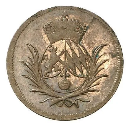 Oval shield with three Palatine lions, an orb between palm branches, crowned.
