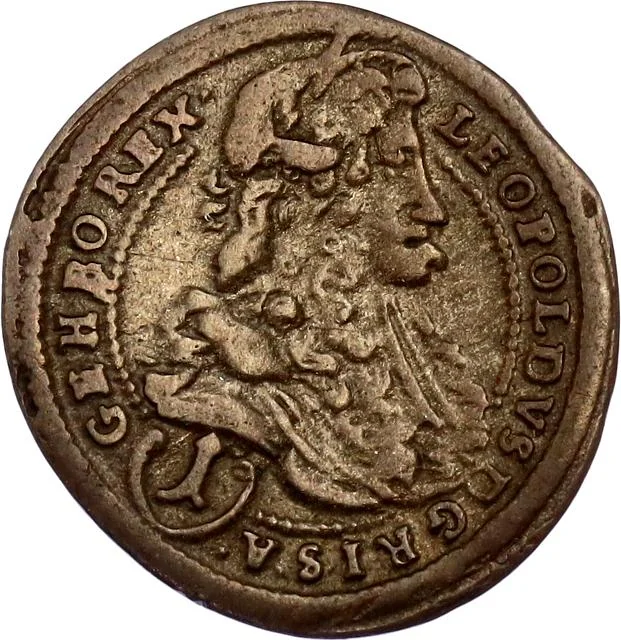 Leopold I facing right, inscribed "Leopoldus Dei Gratia Romanorum Imperator Semper Augustus, Germaniae, Hungariae, Bohemiaeque Rex".