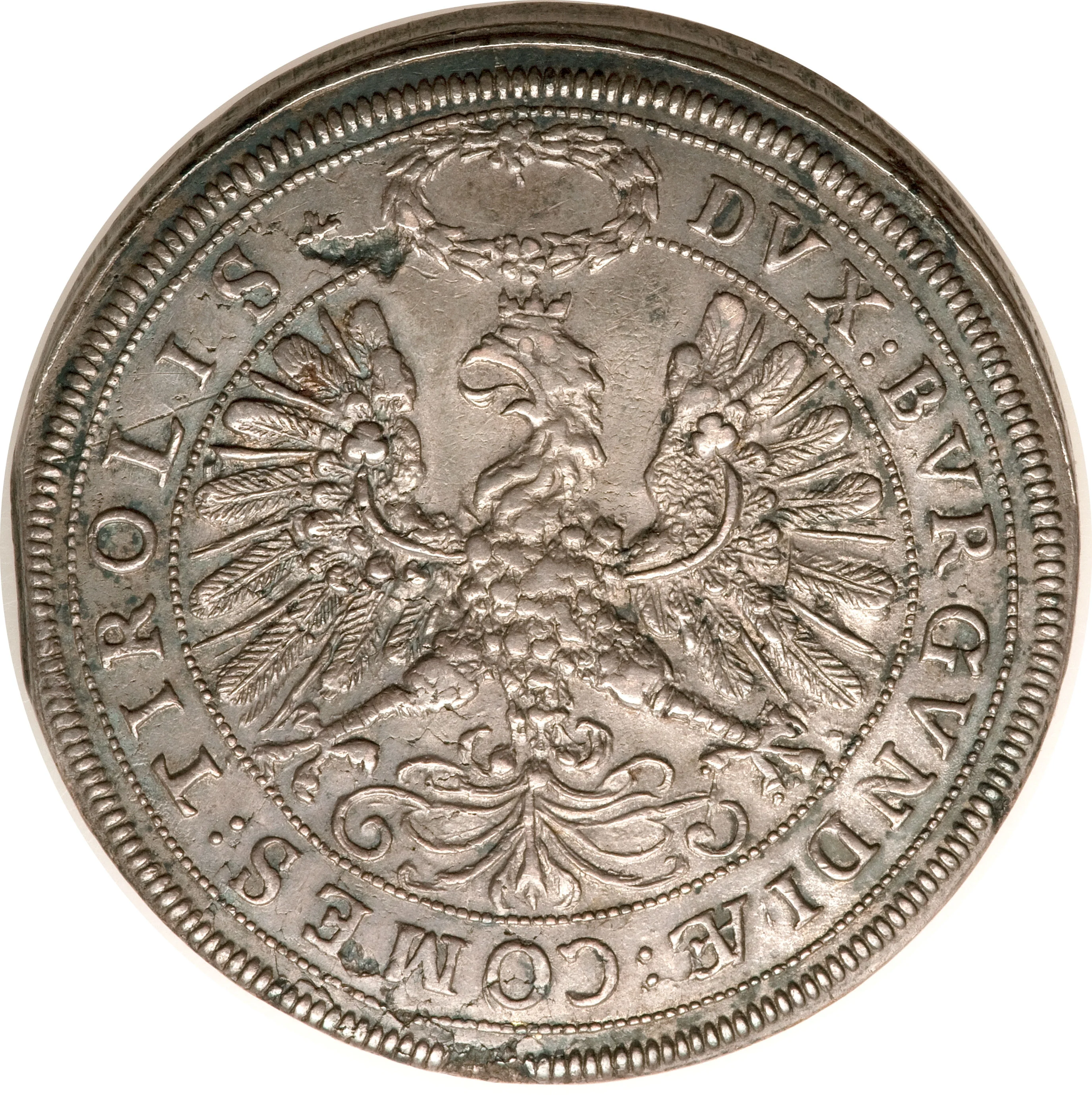 Right-facing busts of Archduke Leopold and Claudia de' Medici. Shoulder robe. Legend begins at 8 o'clock.